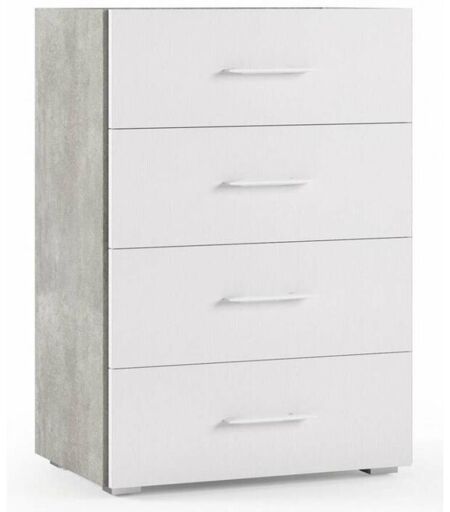 TERRANEO Mobile 4 Cassetti Guide In Metallo e Piano Con Vassoio Contenitore cemento frontali bianco