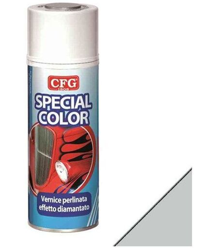 Spray vernice perlinata effetto diamantato Cfg - colore metallizzato silver luna S0200 Smalto brillante che dona riflessi perlescenti alle superfici su cui viene applicato. Sovraverniciabile in ogni momento anche con trasparente. Decora auto, cicli, motocicli, maschere, cornici, addobbi, fregi. Adatta per superfici in metallo, plastica, legno, vetro, ceramica, masonite, intonaco. ...