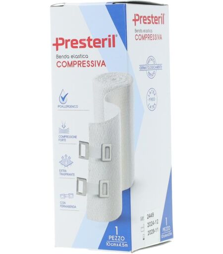 BENDA MEDIPRESTERIL - Descrizione Medipresteril benda compressione forte. Conservazione Validità a confezionamento integro : 60 mesi. - Formato Cod.P0301 1 benda 5x10 cm. ...