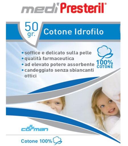 Corman Spa Medipresteril Cotone Idrofilo 50g - Ideale per Pulizia e Cura delle Ferite, Marchio di Qualità