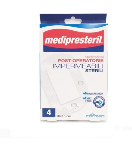 Medipresteril Medicazione Post Operatoria Impermeabile Sterile 10x15cm 4 Pezzi - DESCRIZIONE PRODOTTO: - La medicazione post operatoria impermeabile e sterile di Medipresteril è stata appositamente progettata per offrire la massima protezione e igiene alle ferite dopo interventi chirurgici. Questa … ...