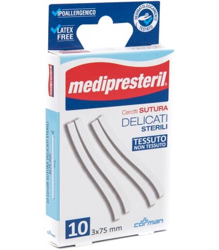 Corman Spa Medipresteril Cerotti Sutura Delicati - 3x75mm, Confezione da 10 Pezzi
