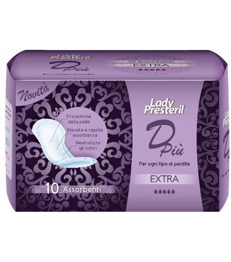 Lady Presteril Dpiù Extra Assorbenti Giorno 10 Pezzi - DESCRIZIONE PRODOTTO: - Gli assorbenti Lady Presteril Dpiù Extra sono la scelta ideale per le donne che cercano una protezione duratura e un comfort ottimale durante la giornata. Questa confezione contiene 10 pezzi di assorbenti giornalieri pro… ...