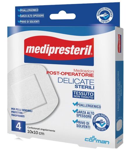 Corman Spa Medipresteril Medicazione Post Operatoria Delicata TNT 10x10cm 4 Pezzi - Guarigione Sicura e Protetta