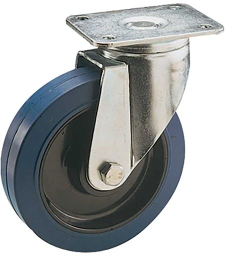 Rocarr RUOTA Ø 100 mm PORTATA 200 kg NYLON GOMMA BLU ELASTICA SUPPORTO PIASTRA GIREVOLE