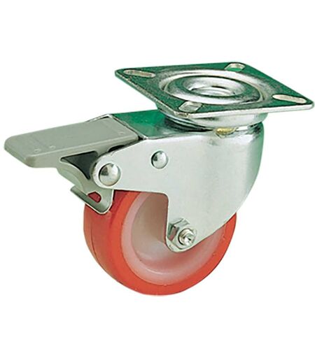 Rocarr RUOTA Ø 50 mm PORTATA 25 kg CON FRENO NYLON ROSSO SUPPORTO A PIASTRA GIREVOLE