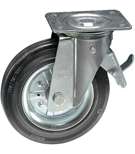 Rocarr RUOTA Ø 160 mm PORTATA 180 kg CON FRENO GOMMA NERA SUPPORTO A PIASTRA GIREVOLE