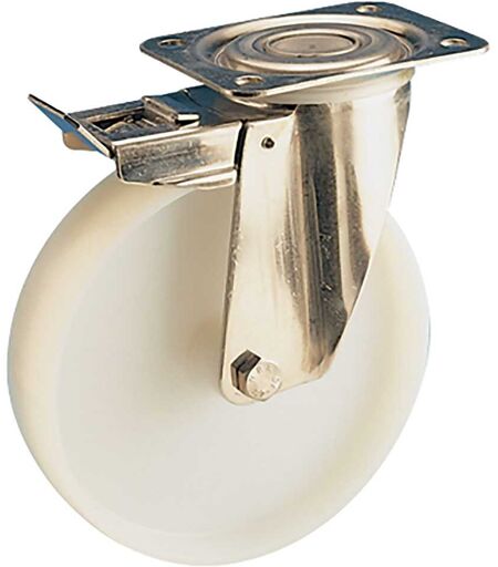 Ruota Ø 100 Mm Portata 150 Kg Con Freno Nylon Bianco Piastra Inox Supporto A Piastra Girevole ...