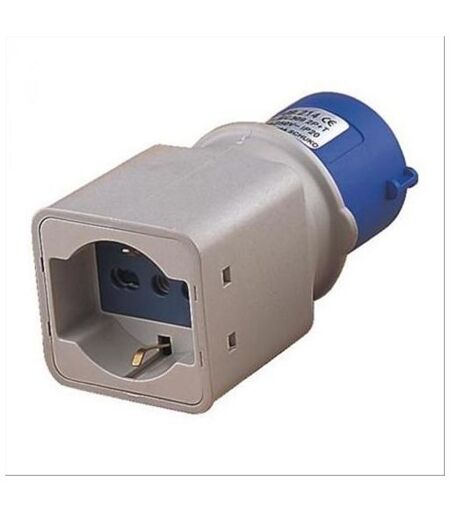 Adattatore industriale: 1 Spina CEE 2P+T 16A 200-250V; 1 Presa 2P+T 16A 200-250V Bipasso Schuko - Grado di protezione IP20 Spina/Presa : 250V 16A ...