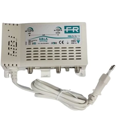 Centralino da interno Fracarro MBJ3R3U T2, con le seguenti caratteristiche: Con 2 ingressi (III+DAB, UHF) da interno autoalimentato Con guadagno 35dB e livello di uscita fino a 120dBμV in banda UHF Amplificazioni separate, regolazioni del livello (20dB) indipendenti per ogni ingresso e bassa figura di rumore Tecnologia T2 con innovativo interruttore di selezione del taglio per le interferenze LTE 4G a 790MHz o 5G a 694MHz IN: 2 Bande: III+DAB, UHF Guadagno: dB 35, 35 Regolazione: dB 20, 20 Figura di rumore: dB 6, 6 Livello Uscita (dBµV): 110, 120 Vantaggi: Selettore T2: innovativo interruttore di selezione del taglio per le interferenze LTE 4G a 790MHz o 5G a 694MHz; filtri LTE 4G e 5G integrati per rendere minimo l’ingombro nelle cassette di derivazione rispetto all’uso di un filtro esterno Funzionalità A.B.L.A : sistema esclusivo FRACARRO per il mantenimento costante del livello di uscita impostato anche al variare del livello di ogni ingresso (circuiti A.B.L.A. indipendenti) con ...