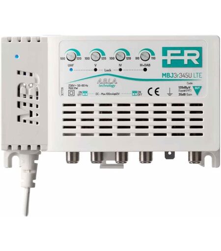 Centralino con 4 ingressi (III+DAB, IV, V, UHF) da interno autoalimentato con guadagno 20dB e livello di uscita fino a 115dBμV in banda UHF, amplificazioni separate, regolazioni del livello (20dB). Centralino con 4 ingressi (III+DAB, IV, V, UHF) da interno autoalimentato con guadagno 20dB e livello di uscita fino a 115dBμV in banda UHF, amplificazioni separate, regolazioni del livello (20dB) indipendenti per ogni ingresso e bassa figura di rumore. Tecnologia T2 con filtro integrato per eliminare le interferenze 5G a 694MHz. ...