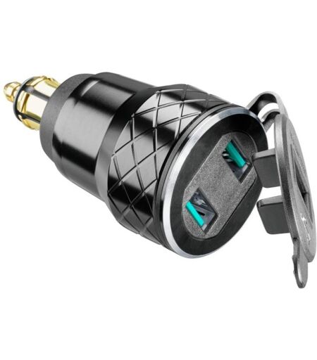 Adattatore a 12 V con connettore DIN, a doppia presa USB, che consente di ricaricare due dispositivi elettronici con cavo di ricarica USB. Adattatore a 12 V con connettore DIN, a doppia presa USB, che consente di ricaricare due dispositivi elettronici con cavo di ricarica USB. Dotato di cappuccio di protezione, è pratico e senza fili, ha una doppia porta USB in alluminio (massimo 4,2 A) e voltmetro incorporato. Caratteristiche Cappuccio di protezione Doppia porta USB Voltmetro incorporato ...