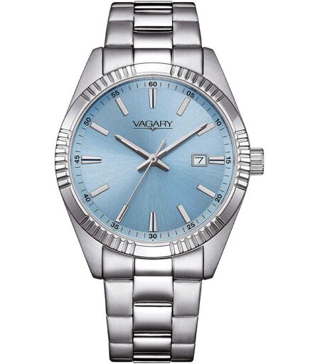 Orologio Da Uomo Di Vagary Della Collezione Timeless. Orologio Solo Tempo Con Cassa In Acciaio Diametro Cassa 39 Mm. Il Quadrante Ice Blue Con Indici Applicati.Bracciale In Acciaio Con Chiusura A Pulsante Con Movimento Al Quarzo Citizen Con Vetro ...