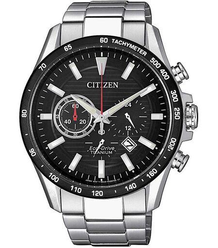 Orologio Cronografo Da Uomo Di Citizen Della Collezione Supertitanio Sport. Modello Con Cassa Con Fondo Serrato A Vite Del Diametro Di 42,5 Mm. Orologio Con Quadrante Nero Con Indici Applicati, Bracciale In Supertitanio Tic Con Chiusura A Pulsante E ...