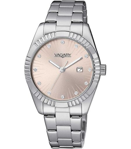 Orologio Solo Tempo Da Donna Di Vagary, Della Collezione Timeless Lady. La Cassa E Il Bracciale Sono In Acciaio. Il Diametro Della Cassa È Di 32mm. Il Quandrante È Avorio Con Cristalli Applicati. Il Bracciale È In In Acciaio Con Chiusura A Pulsante. ...
