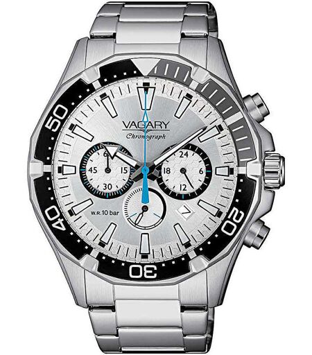 Orologio Cronografo Da Uomo Di Vagary Della Collezione Super Vagary. Modello Con Cassa In Acciaio Del Diametro Di 42 Mm E Quadrante Con Indici A Tacche. Il Bracciale È Realizzato In Acciaio Con Chiusura A Pulsanti. Orologio Con Resistenza All'Acqua Di 10 ...