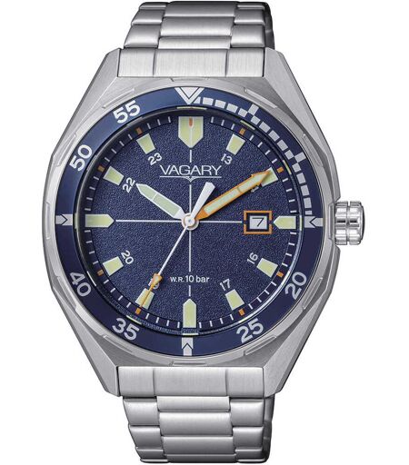 Orologio Vagary Da Uomo Della Collezione Aqua39 2024. Orologio Solo Tempo Con Cassa In Acciao Spazzolato Con Lunetta Blue, Diametro Cassa 41 Mm, Quadrante Blue Opaco Con Indici E Lancette Con Trattamento Luminous E Bracciale In Acciaio Con Chiusura A ...