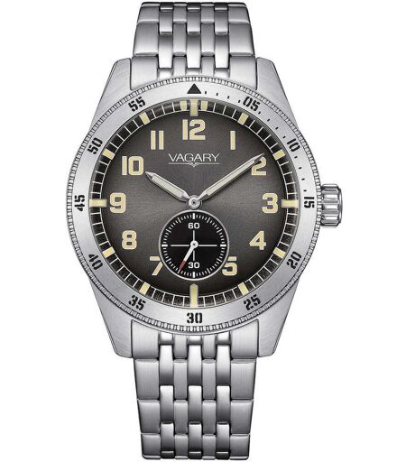 Orologio Da Uomo Di Vagary Della Collezione Flyboy Small Second. Orologio Con Cassa In Acciaio Con Fondo Serrato A Vite, Diametro Cassa 40mm E Vetro Minerale. Orologio Con Quadrante Nero Opaco Con Indici E Numeri Arabi E Piccoli Secondi A Ore Sei E ...