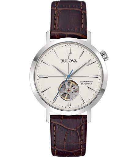 Orologio Solo Tempo Da Uomo Di Bulova Della Collezione Aerojet. Il Materiale Della Cassa È Acciaio Di Misura 38 Mm. Il Materiale Del Cinturino È Pelle Di Colore Marrone. La Chiusura Del Cinturino È Deployante. Gli Indici Sono A Tacche. Il Movimento È ...