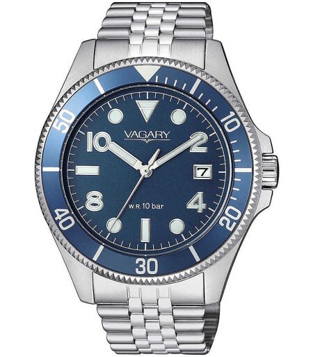 Orologio Solo Tempo Dauomo Di Vagary Della Collezione Di Aqua 39. Cassa In Acciao Con Fondo Serrato A Vite Diametro Cassa 41mm , Quadrante Blue Con Indici E Sfere Chiari E Ghiera In Alluminio Blue , Bracciale In Acciao Integrato Con Chiusura A Pulsante. ...