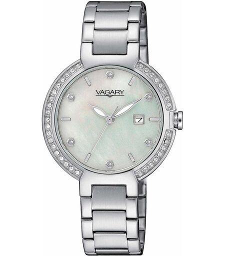 Orologio Solo Tempo Da Donna Di Vagary By Citizen Della Collezione Flair. Orologio Con Cassa In Acciaio Con Lunetta Con Cristalli Con Diametro Di 32mm. Il Quadrante È Di Colore Madreperla Con Indici E Cristalli. Orologio Con Bracciale In Acciaio ...