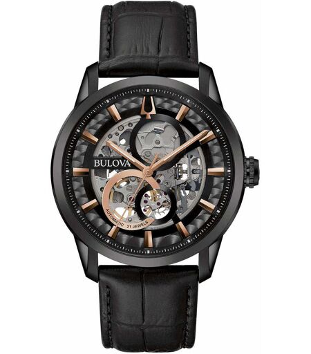 Orologio Solo Tempo Da Uomo Di Bulova Della Collezione Sutton Automatic. Orologio Con Cassa In Acciaio Ip Nero Con Diametro Di 43 Mm. Il Cinturino È In Pelle Finitura Coccodrillo Nero Con Chiusura Deployante. Il Quadrante Ha Indici A Tacche. Il Movimento ...