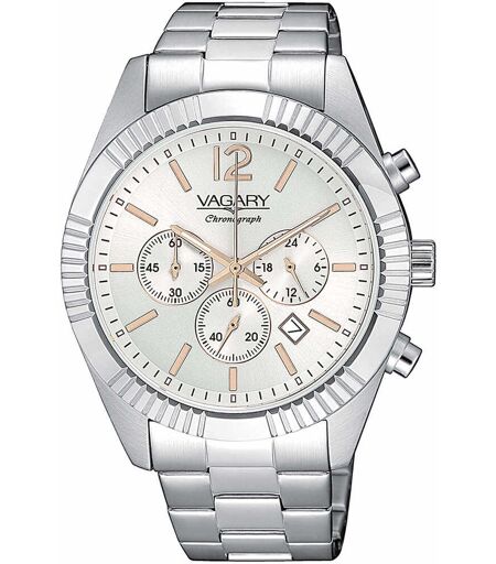 Orologio Cronografo Da Uomo Della Collezione Timeless Gent Di Vagary By Citizen. Orologio Cronografo Con Cassa E Bracciale Realizzati In Acciao Integrato. Diametro Cassa 41 Mm. Il Quadrante È Argento Con Indici I Applicati. Il Bracciale È In Acciaio Con ...