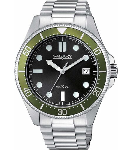Orologio Solo Tempo Da Uomo Di Vagary By Citizen Della Collezione Aqua 39. Bracciale Realizzato In Acciaio Integrato Con Chiusura A Pulsante. Orologio Con Quadrante Di Colore Nero Con Indici E Sfere Chiari. La Cassa È Realizzata In Acciaio Con Fondo ...