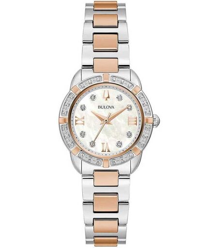 Orologio Solo Tempo Da Donna Di Bulova Della Collezione Lady Diamond. Orologio Con Cassa In Acciaio E Ip Oro Rosa Di 27 Mm E Cinturino In Acciaio E Ip Oro Rosa. Chiusura: Deployante. Indici Con Numeri Romani E Diamanti. Il Movimento È Al Quarzo. La ...