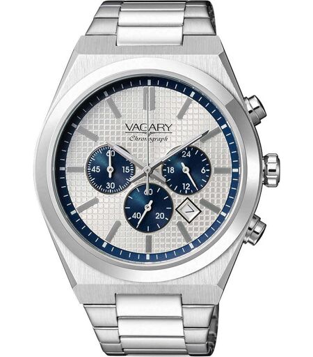 Orologio Cronografo Da Uomo Di Vagary Della Collezione Timeless. Con Cassa In Acciaio Diametro Cassa 41 Mm. Orologio Con Quadrante Bianco Lavorato Guilloché Con Indici E Lancette Di Color Acciaio. Ha Un Bracciale In Acciaio Con Chiusura A Pulsante. La ...