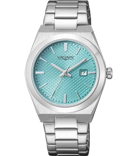 Orologio Solo Tempo Da Donna Di Vagary Della Collezione Timeless. Con Cassa In Acciaio Diametro Cassa 32mm. Orologio Con Quadrante Turchese Lavorato Guilloscé Con Indici E Lancette Di Color Acciaio. Ha Un Bracciale In Acciaio Con Chiusura A Pulsante. La ...