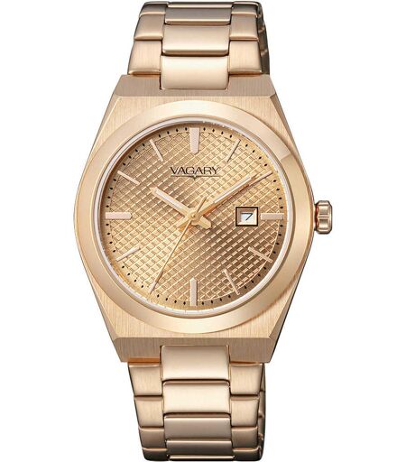 Orologio Solo Tempo Da Donna Di Vagary Della Collezione Timeless. Con Cassa In Acciaio Ip Oro Rosa Diametro Cassa 32mm. Orologio Con Quadrante Bronzo Con Dettagli Sul Tono Della Cassa . Ha Un Bracciale In Acciaio Ip Oro Rosa Con Chiusura A Pulsante. La ...