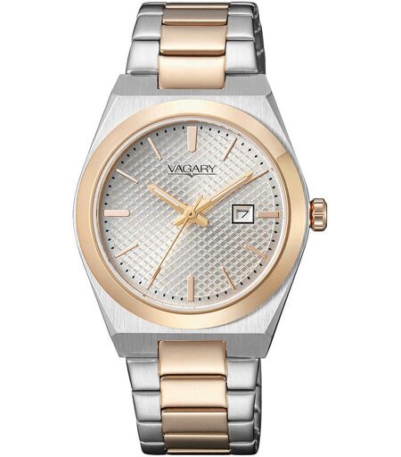 Orologio Solo Tempo Da Donna Di Vagary Della Collezione Timeless. Con Cassa In Acciaio Bicolore Oro Rosa Diametro Cassa 32mm. Orologio Con Quadrante Avorio Con Dettagli Sul Tono Della Cassa . Ha Un Bracciale In Acciaio Bicolore Oro Rosa Con Chiusura A ...