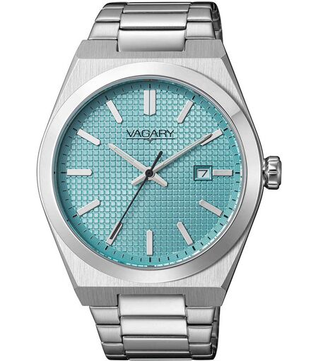 Orologio Solo Tempo Da Uomo Di Vagary Della Collezione Timeless. Con Cassa In Acciaio Diametro Cassa 40 Mm. Orologio Con Quadrante Turchese Lavorato Guilloscé Con Indici E Lancette Di Color Acciaio. Ha Un Bracciale In Acciaio Con Chiusura A Pulsante. La ...