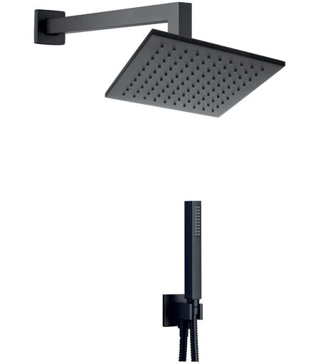 Palazzani KIT DOCCIA DOCCE SQUARE NERO BRACCIO 300 mm SOFFIONE ABS 200x200 mm E DOCCETTA 1 GET