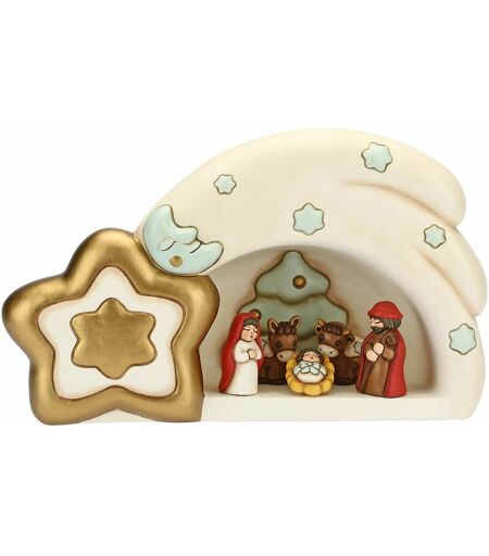 THUN Mini Presepe Classico 2019 con Capanna Grande a Stella Cometa - Ceramica - 20x10x18 cm -