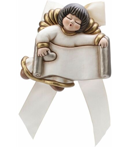 THUN - Angelo Grande da Parete con Targetta Personalizzabile dal cliente - Formella con Fiocco Bianco - Ceramica - Linea i Classici