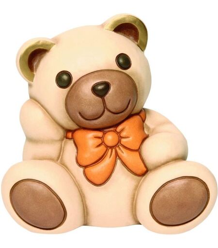 THUN Orso Teddy Aldo Medio con Fiocco Arancione - Animali Soprammobili da Collezione - Ceramica - i Classici -