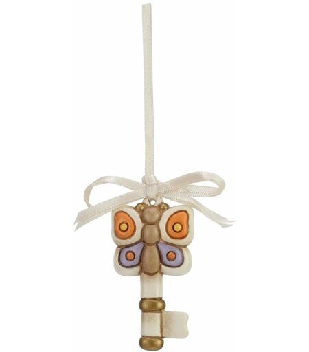 THUN Chiave con Farfalla da Appendere - Bomboniera - Formato Mini - Ceramica - 3 x 6 cm -