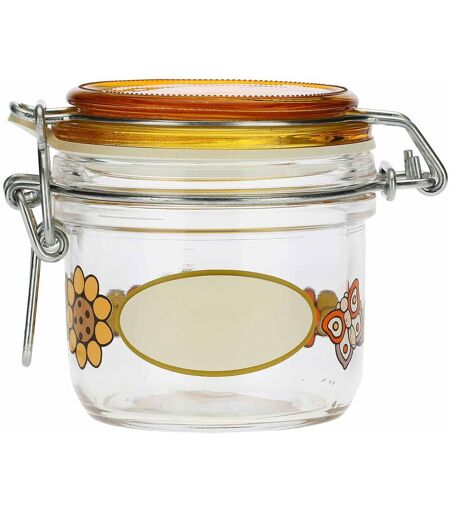 THUN Barattolo Ermetico in Vetro con Fiori - Arancione - Arredo Casa, Cucina - Idea Regalo - Linea Country - Vetro - 200 ml h 8,9 cm ⌀ 8 cm -