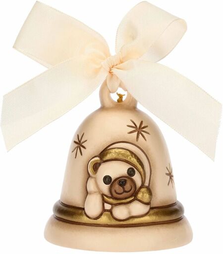 THUN Campanella Limited Edition 2023 Crema con Teddy in Ceramica Decorata a Mano, Decorazioni Natale Casa, 7.3x7.3x8.5 cm h -