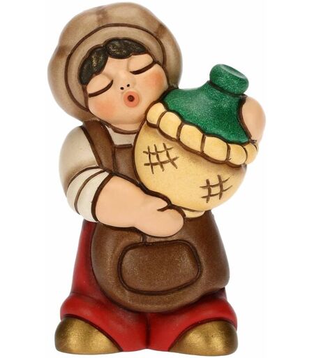 THUN Oste con Damigiana in Ceramica Decorata a Mano, Colore Rosso, Linea Presepe Classico, Decorazioni Natale Casa, 5.1x3.5x8.1 cm h -