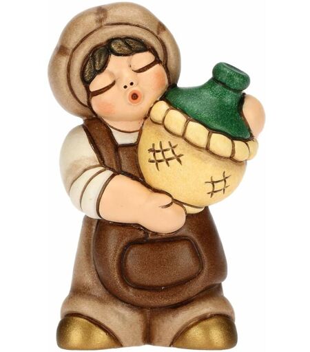 THUN Oste con Damigiana in Ceramica Decorata a Mano, Colore Bianco, Linea Presepe Classico, Decorazioni Natale Casa, 5.1x3.5x8.1 cm h -