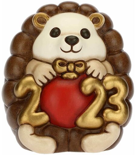 THUN Natale 2022 - Soprammobile Riccio Buon Anno 2023 in Ceramica Decorata a Mano, Versione Bianco - Idea Regalo Natale 2022-6.8x6.6x7.7 cm h -