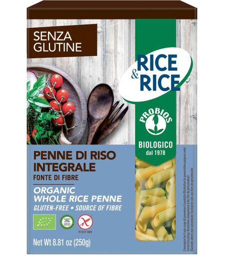 RICE &RICE - Specialità di Riso senza glutine integrale Penne Da chicchi di riso italiano al 100%. Ingredienti *farina di riso integrale. *biologico APPORTO NUTRIZIONALE MEDIO per 100 g ENERGIA kJ / kcal1522 / 359 GRASSI3,4 di cui Acidi Grassi Saturi0,6 CARBOIDRATI73,3 di cui Zuccheri0,7 FIBRE3,0 P… ...