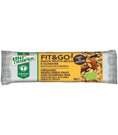 Biochampion Fit&go - Energy Snack 1 Barretta Da 30 Grammi. Le Barrette Energetiche Fit And Go Della Linea Biochampion Sono Formulate Con Un Mix Di Frutta Secca Semi Miele Ed Arricchite Con Guaran Ed Estratti Vegetali Energetici. ...