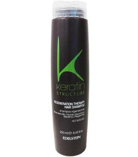 Shampoo rigenerante. La sua formula arricchita con keratina, aloe vera, acido ialuronico e regenina apporta forza e protezione preparando il capello ad assimilare il regeneration therapy kit. **EDELSTEIN KERATIN SHAMPOO RIGENERANTE THERAPY 250ML** Scopri il segreto per capelli forti, sani e luminosi con l'EDELSTEIN KERATIN SHAMPOO RIGENERANTE THERAPY da 250ml. Questo shampoo innovativo è progettato per nutrire in profondità e rigenerare i capelli danneggiati, restituendo loro vitalità e lucentezza. Grazie alla sua formula avanzata arricchita con cheratina, il nostro shampoo offre un trattamento professionale direttamente a casa tua. La cheratina è una proteina fondamentale per la struttura dei capelli, e la sua presenza nel nostro shampoo consente di riparare le fibre capillari, rinforzandole e prevenendo la rottura. EDELSTEIN KERATIN SHAMPOO RIGENERANTE THERAPY è ideale per chi ha capelli secchi, crespi o trattati chimicamente, poiché aiuta a ristabilire l'equilibrio naturale e a ridurre l'effetto crespo. La texture cremosa e ricca del prodotto avvolge i capelli in una soffice schiuma, mentre il suo profumo delicato trasforma il tuo momento di lavaggio in un'esperienza sensoriale unica. Basta applicare una piccola quantità di shampoo sui capelli bagnati, massaggiare delicatamente e risciacquare. Per risultati ottimali, si consiglia di utilizzare il trattamento insieme al nostro balsamo rigenerante EDELSTEIN. In aggiunta ai benefici immediati, l'EDELSTEIN KERATIN SHAMPOO RIGENERANTE THERAPY favorisce anche la salute a lungo termine dei tuoi capelli. Utilizzando regolarmente il prodotto, noterai capelli più morbidi, setosi e facili da pettinare. Dì addio ai nodi e ai capelli opachi: con il nostro shampoo, ogni giorno sarà un giorno di bellezza. Scegliere EDELSTEIN significa optare per ingredienti di alta qualità e una cura attenta per i tuoi capelli. Siamo orgogliosi di offrirti un prodotto privo di parabeni e solfati, garantendo così una pulizia delicata e sicura. Non solo i tuoi capelli ti ringrazieranno, ma anche il tuo cuoio capelluto, che sarà coccolato e idratato. Fai il primo passo verso una chioma da sogno con EDELSTEIN KERATIN SHAMPOO RIGENERANTE THERAPY. Aggiungilo al tuo carrello oggi stesso e trasforma la tua routine di bellezza in un rituale di benessere! ...