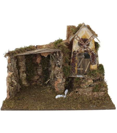 ROSSI ROSA Capanna per Presepe con Luci e Mulino a Vento 60x35 cm 11771