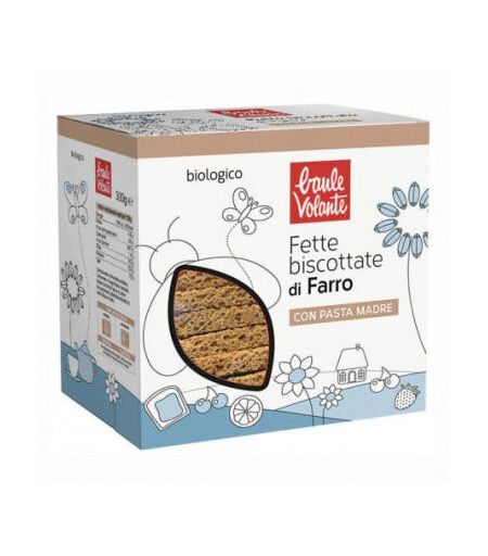 Fette Biscottate Di Farro Bianco Fette Biscottate DI FARRO BIANCO Componenti farina di farro, pasta madre di farina di farro, olio extra vergine di oliva, estratto di malto d'orzo, sale marino. Formato 300 g. ...