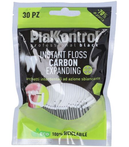 Ideco Srl Plakkontrol Instant Floss Carbon Expanding, Archetto Interdentale Monouso 30 pezzi, Pulizia Interdentale, Sbiancante, Microsilici